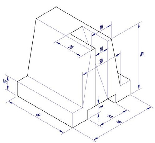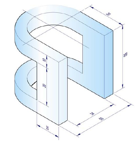 3.擠出(高度50mm),4.作圓角(選「全圓角」)特徵,選擇3個面。 (b)1.選擇水平面作2D草圖,2.用偏移指令將邊線向內偏移8mm,3.刪除右邊的直線段,4.用直線指令重畫右邊的直線段並將它拉到超過最右邊的邊線,4.重新標註直到完全定義。5.作「切割擠出」特徵(全部)。