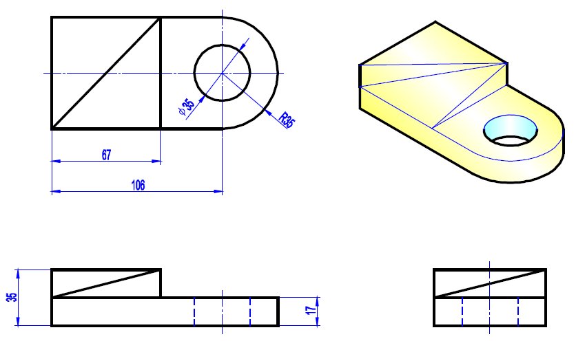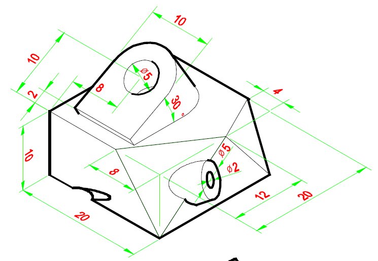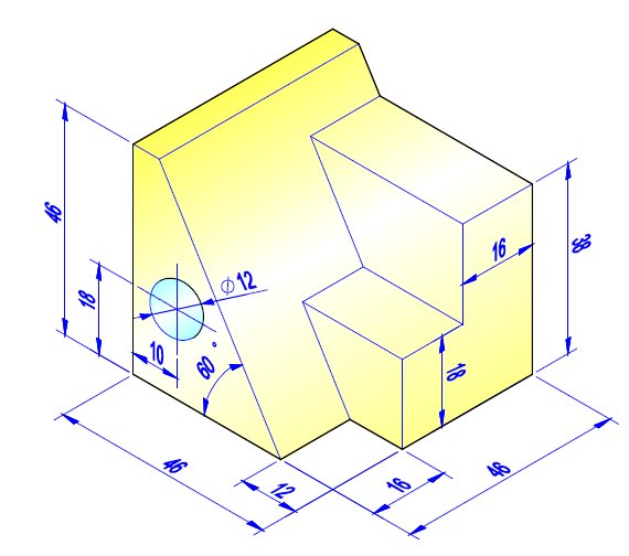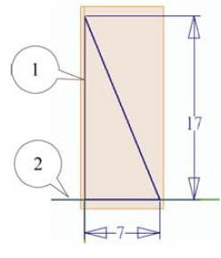 - 用投影幾何指令將梯形體的邊線投影到工作平面1上,完成標註尺寸並完成草圖。
