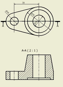 - 用「註解/中心線」在剖面圖作出中心標記。