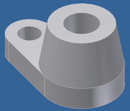 - 右圓錐頂面上以「同圓心」方法作一直徑15mm之孔,終止為「通過全部」