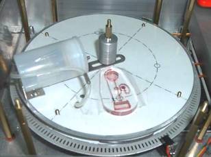 將小型無線CCD裝在轉盤上,盯住待測晶片隨轉盤轉動,再用一台筆記型電腦與搭配的影像接收軟硬體,即可進行觀測;優點是方便攜行,缺點是無線傳輸的影像易受光影、雜訊與高轉速的天線振動等影響而變差。